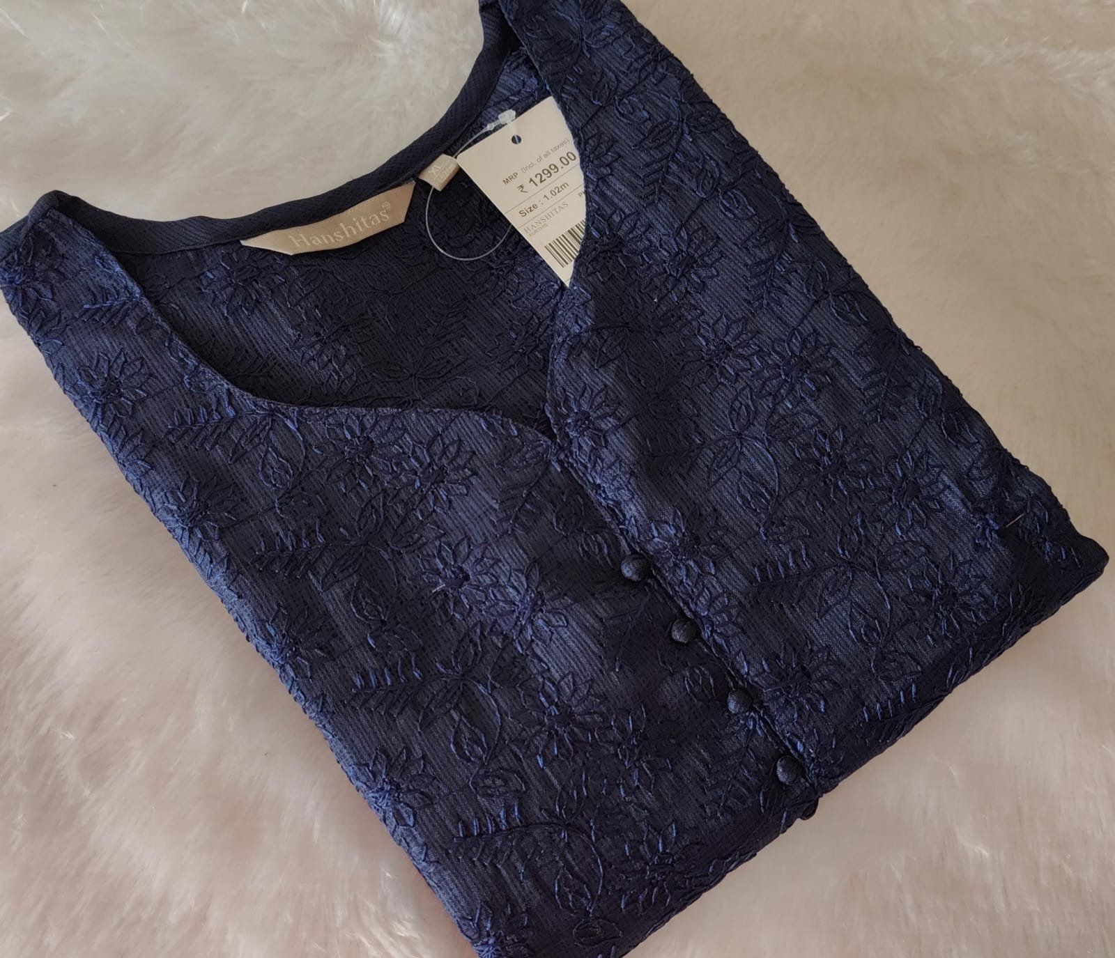 Ethnic Wear Navy Blue Colour Cotton Chicken Embroidery Kurti